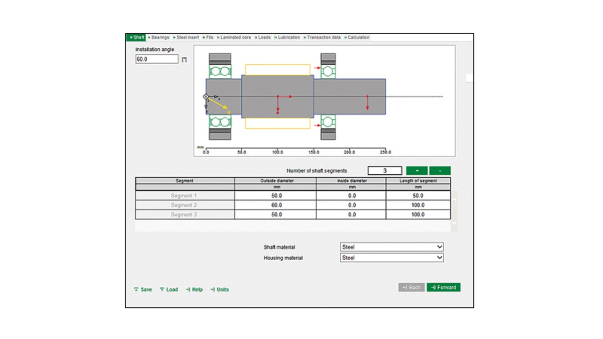 Programın kullanıcı dostu arayüzü hesaplama sürecinin her adımında size yol gösterir ve girdiğiniz veriler kontrol amaçlı görselleştirmeler halinde gösterilir. Makinenin temelini oluşturan yataklar birbirinden farklı varyasyonlarla hesaplanabilir, INA ve FAG makaralı rulmanların verileri tümleşik bir veritabanından kolayca yüklenebilir. Girilen tüm veriler yerel olarak kaydedilebilir. Ayrıca, detaylı sonuçlar ve tüm giriş verileri bir PDF dosyasında belgelendirilir.